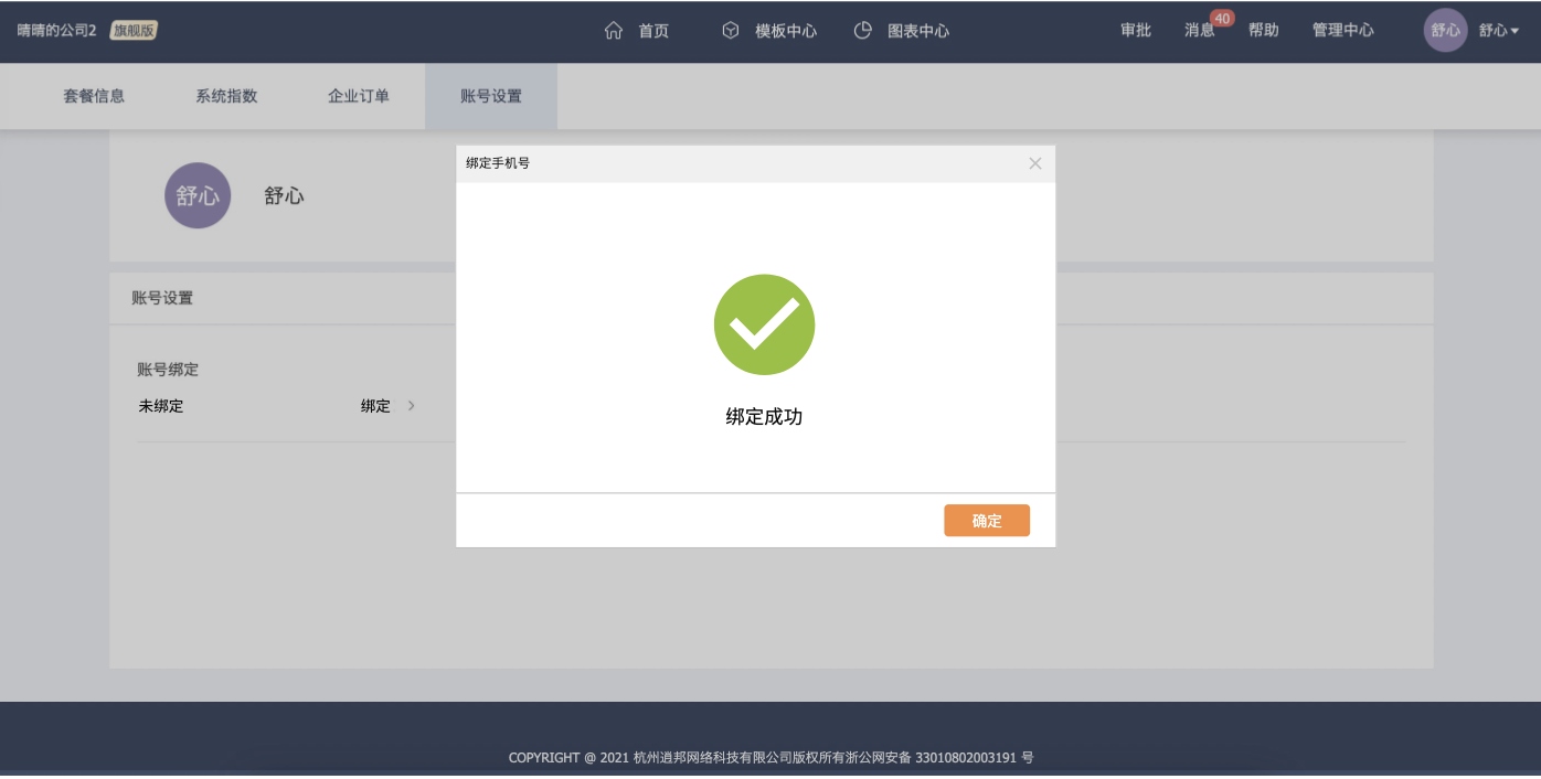 (6)绑定成功后,会有弹窗提醒“绑定成功”。
