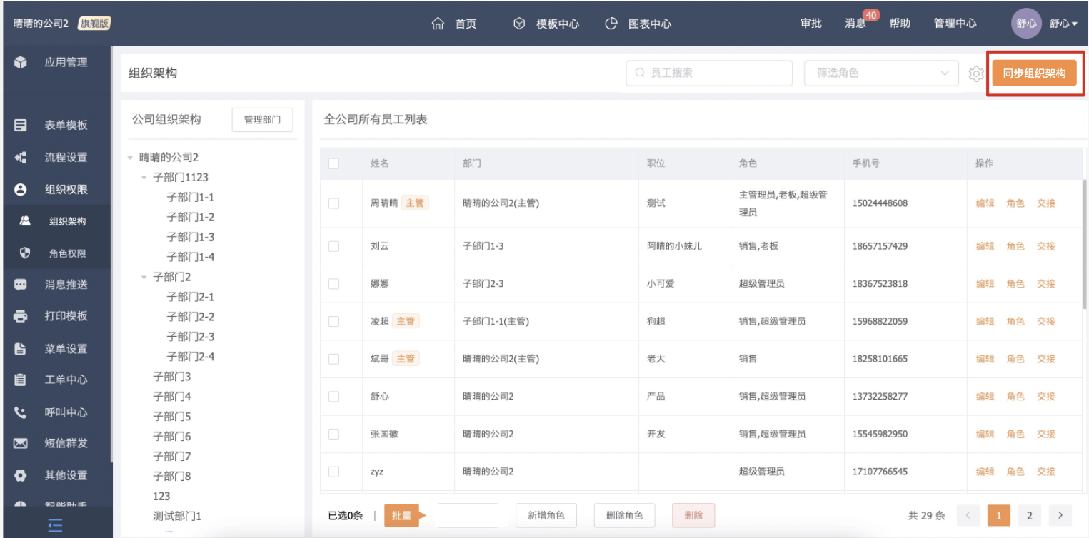 如需立即同步组织架构,可手动点击“同步组织架构”即可。