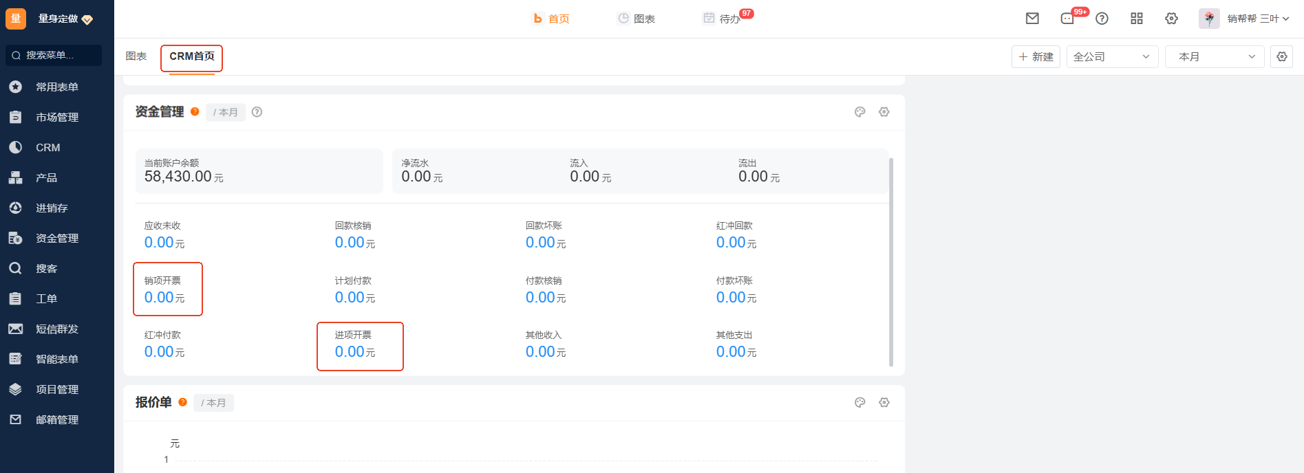 ● 包含crm模块的销项发票,及进销存模块的进项发票