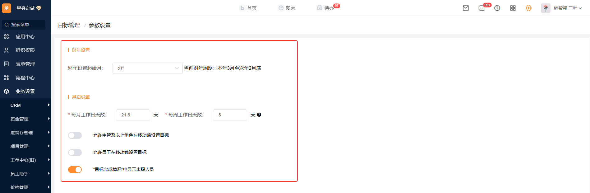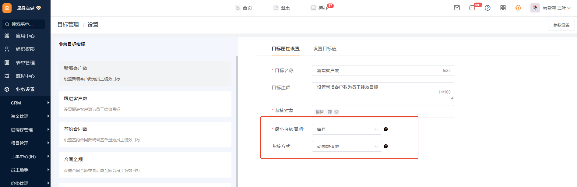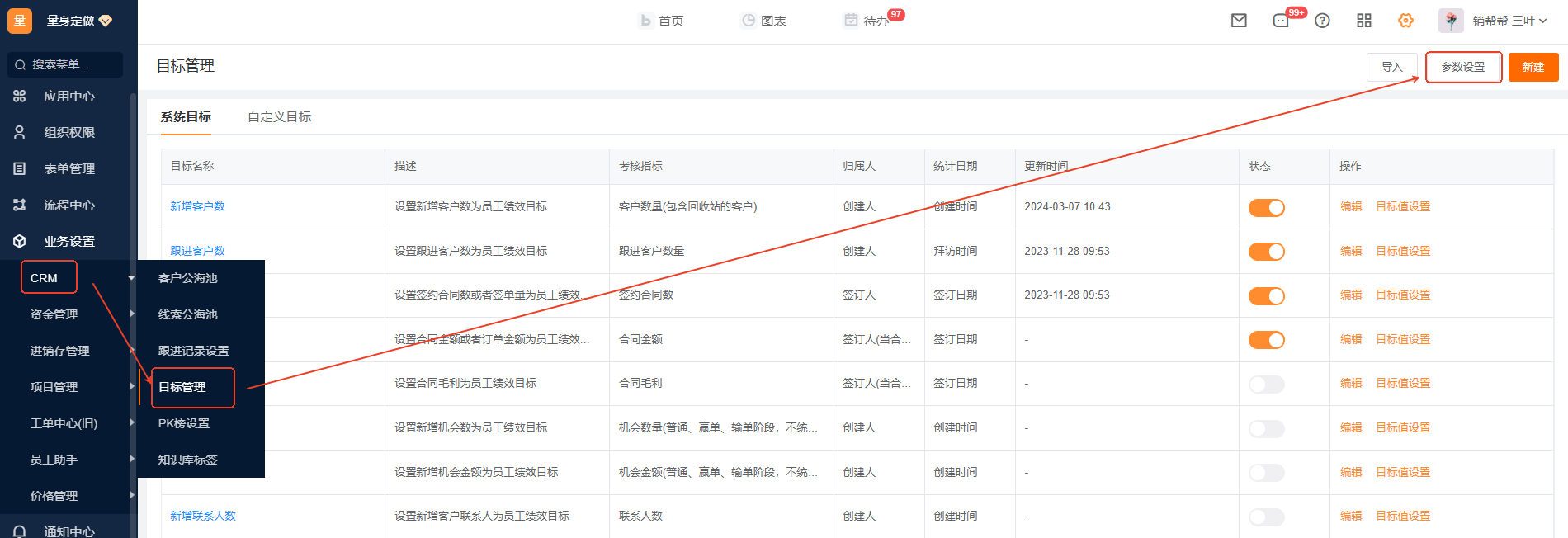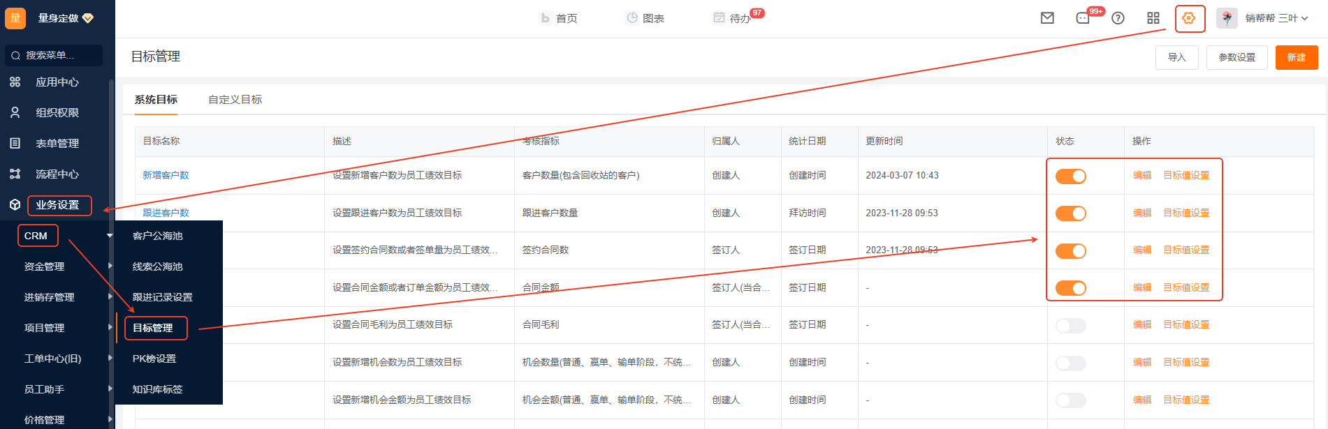 ● 管理中心 – 业务设置 -CRM-目标管理 |