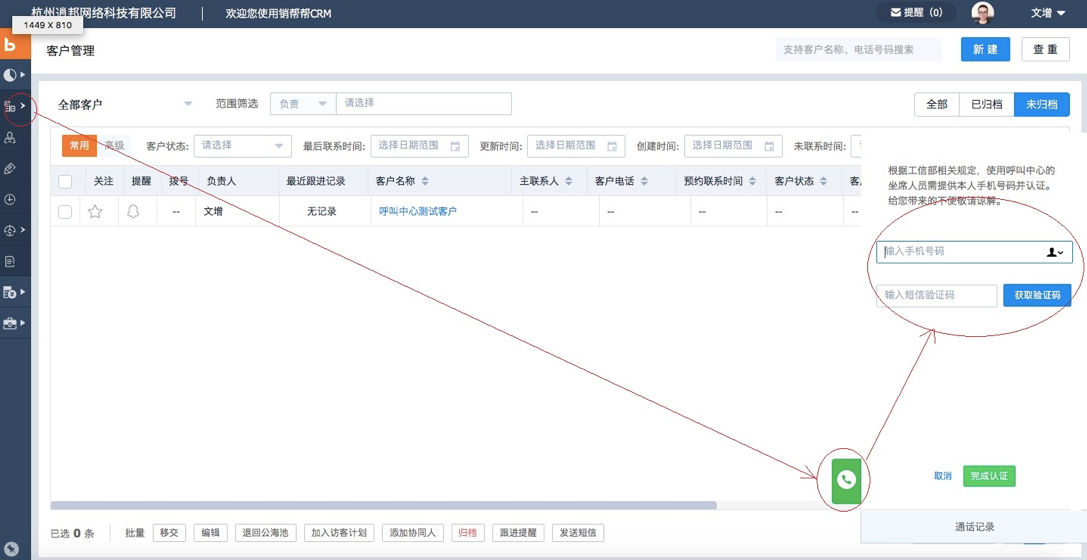 以上操作完成以后,就可以在销帮帮客户界面拨打电话了