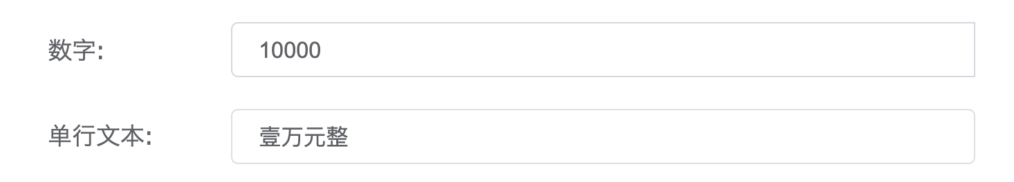 如何将数字转换为大写? 在日常使用销帮帮中,很多场景下需要将录入的数字字段的值转换为大写,比如合同中的金额需要转成大写进行打印。 下面看下不同的数字转换大写的函数写法。 数字转大写金额 数字转大写在不含小数点时需要用到的公式为: TEXT(num,text_format): 将数字转换成特定格式的文本。 函数编写整体如下: TEXT(数字,”[Num2]”) 公式中的【数字】指代的是表单中对应的字段,如复制本公式需要将公式中【数字】替换成自己所需的字段。